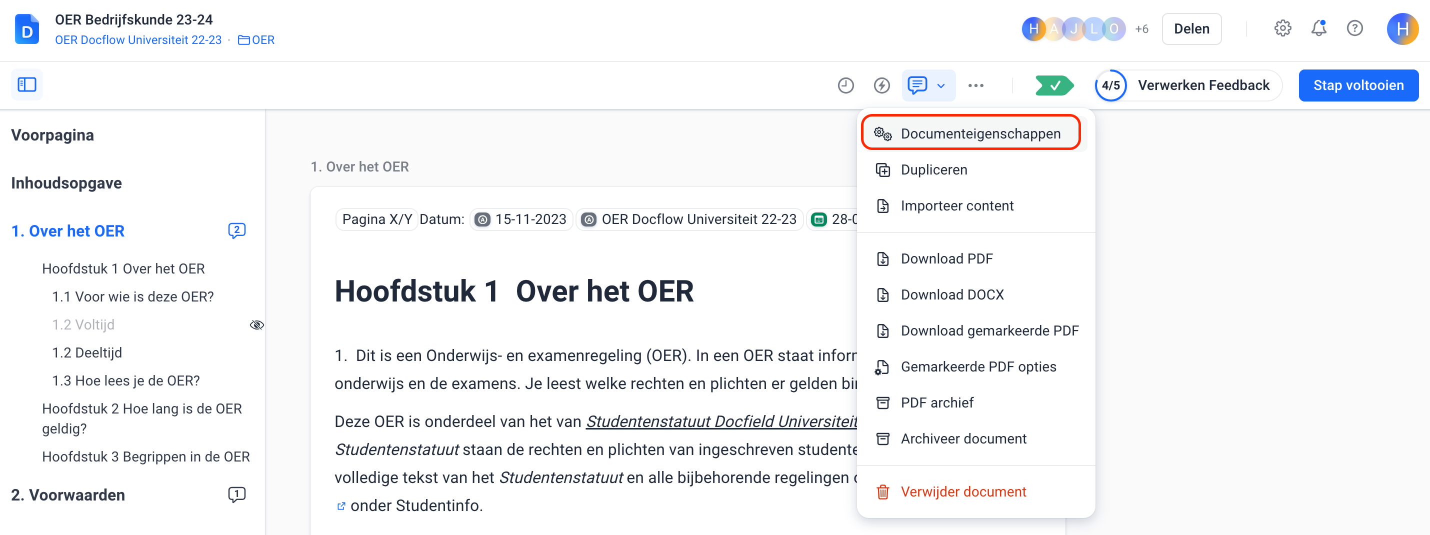 Voor ieder document kun je een aantal eigenschappen aanpassen: