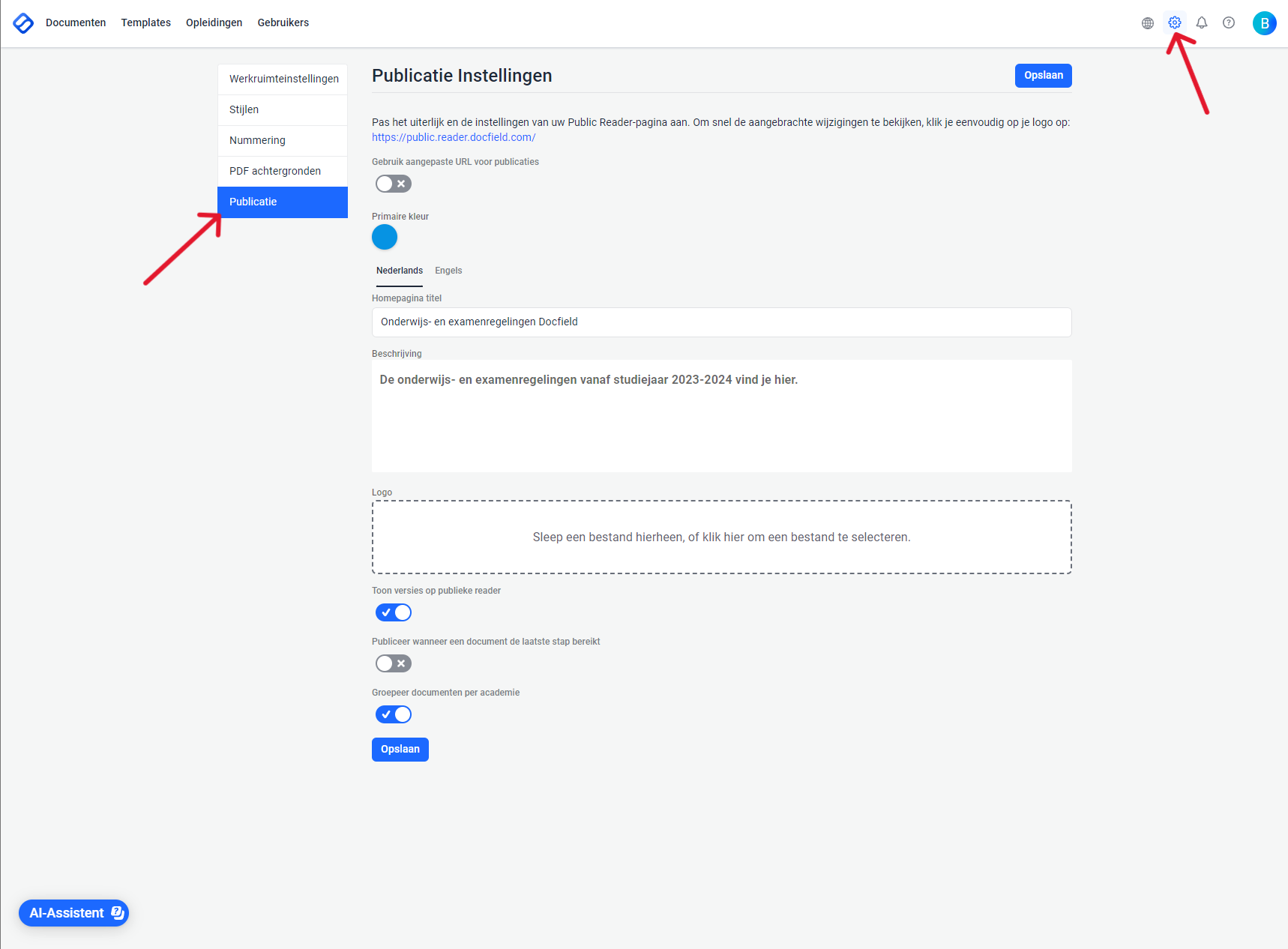 Als beheerder van een hogeschoolomgeving binnen Docfield kun je een eigen domeinnaam instellen voor de public reader, bijvoorbeeld: oer.[hogeschool naam].nl