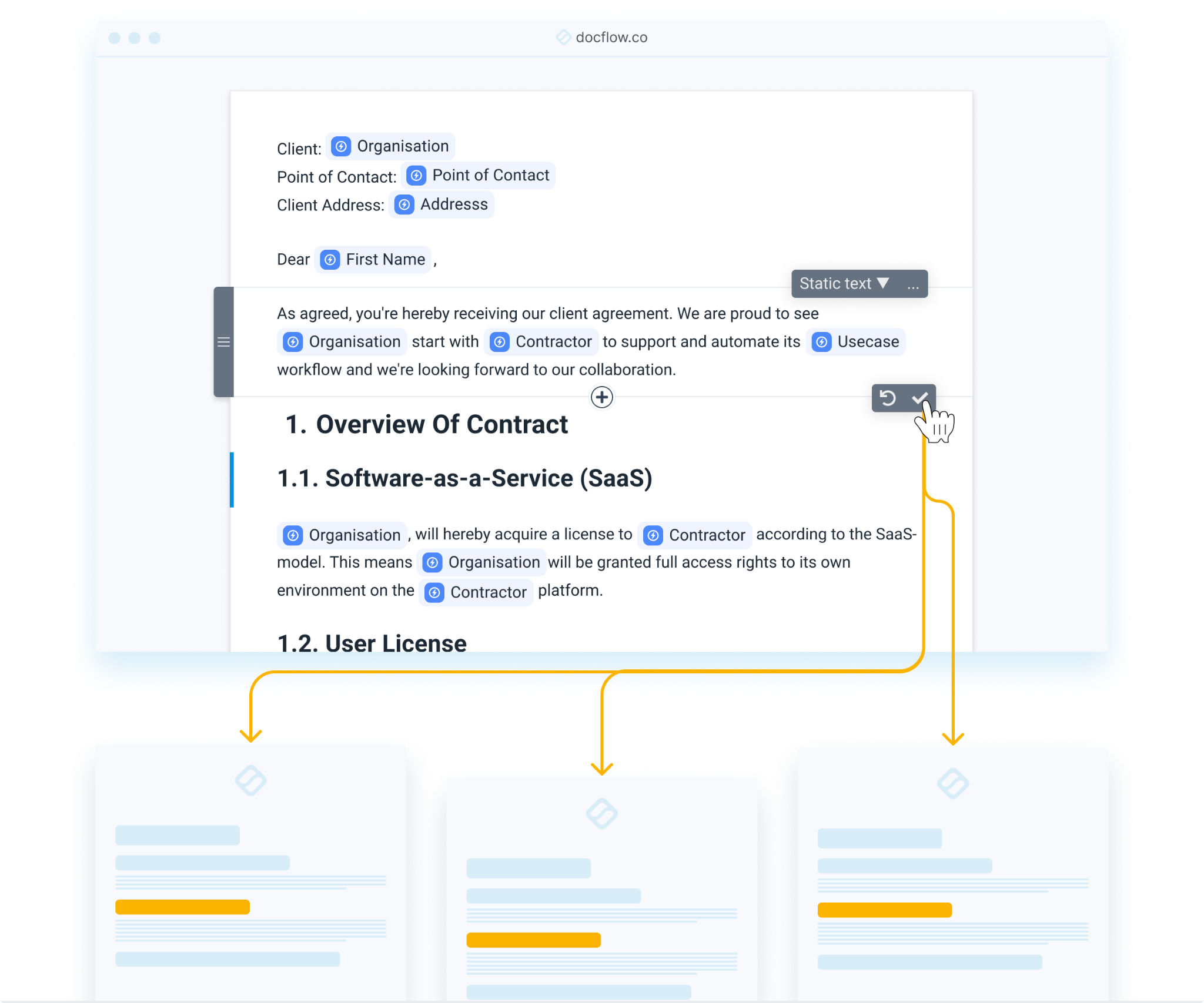 Firstly, it is important to know is that in Docfield, every document is directly linked to a template by default. This means that when you change a template, every document that comes from that template is changed, too.