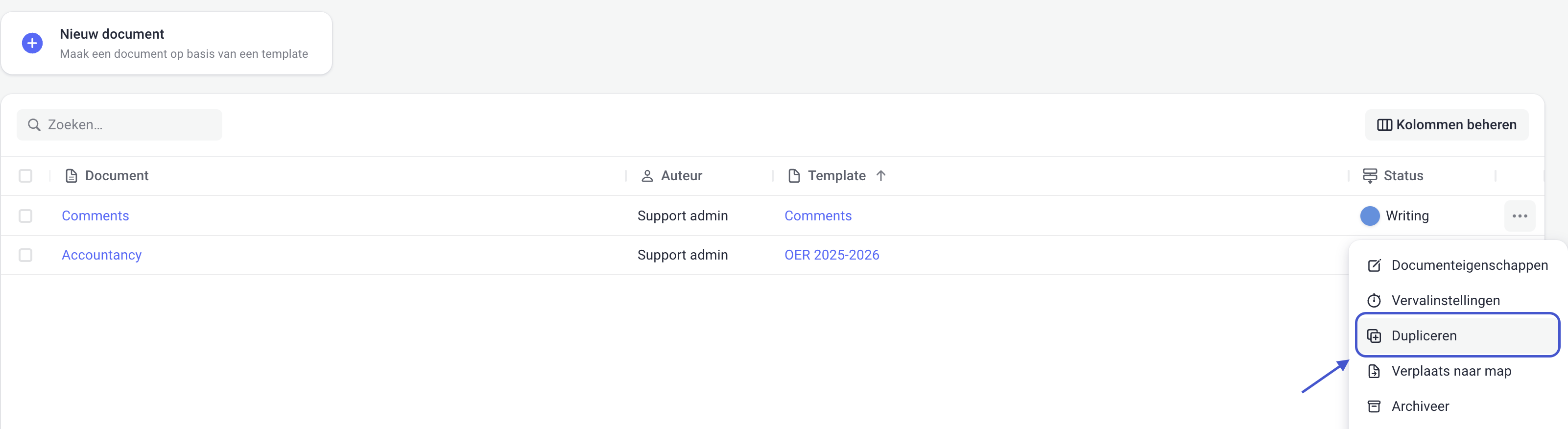 Would you like to create a new template or document similar to an existing one? Then you don’t have to start from scratch. In Docfield, you can easily duplicate an existing template or document. This saves time and helps you work consistently, for example, with the same structure, blocks, or logic.
